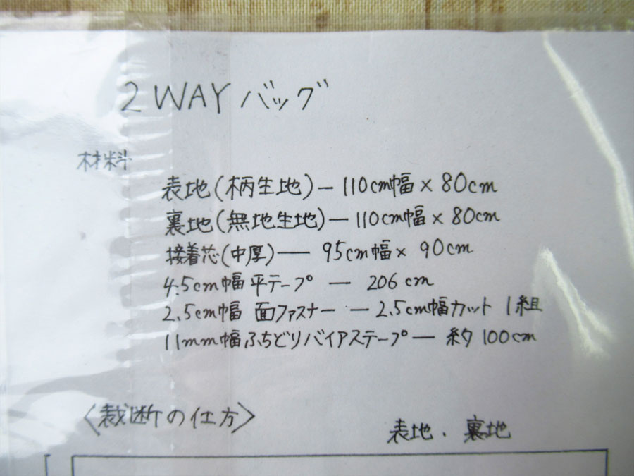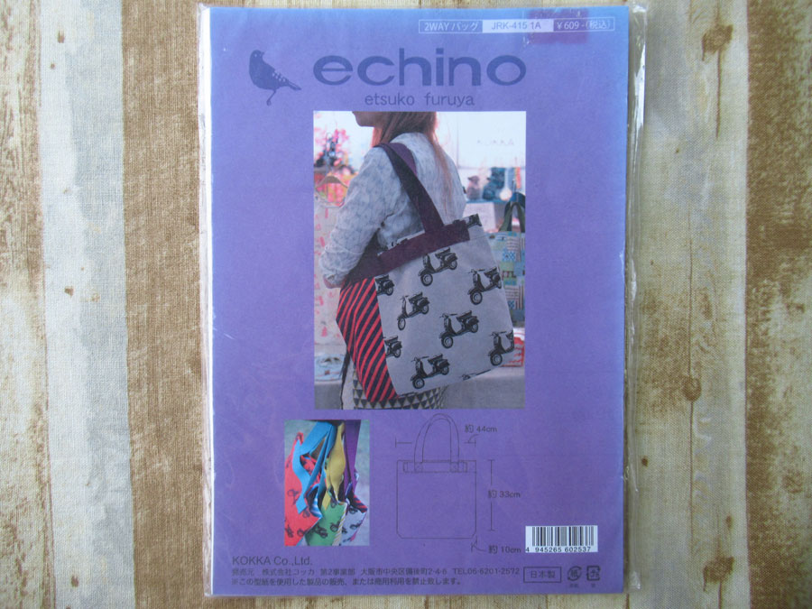 現品処分!訳あり! 型紙(パターン)『echino エチノ / 2WAYバッグ』