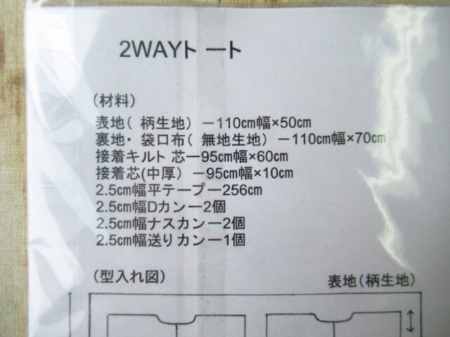 現品処分!訳あり! 型紙(パターン)『echino エチノ / 2WAYトート』