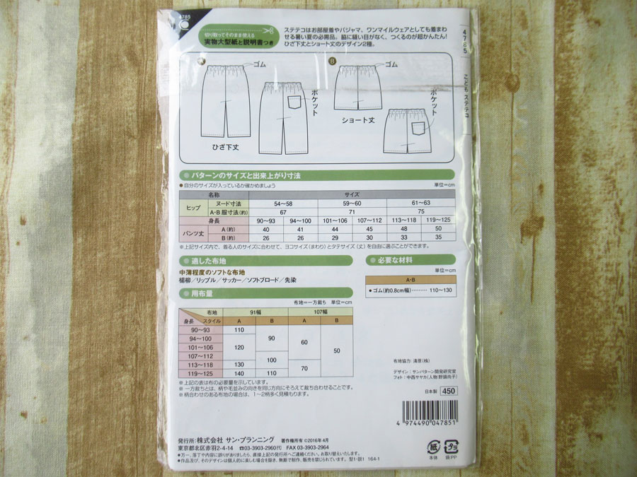現品処分!訳あり! 型紙(パターン)『こども男女 / こどもステテコ / サン・プランニング 』