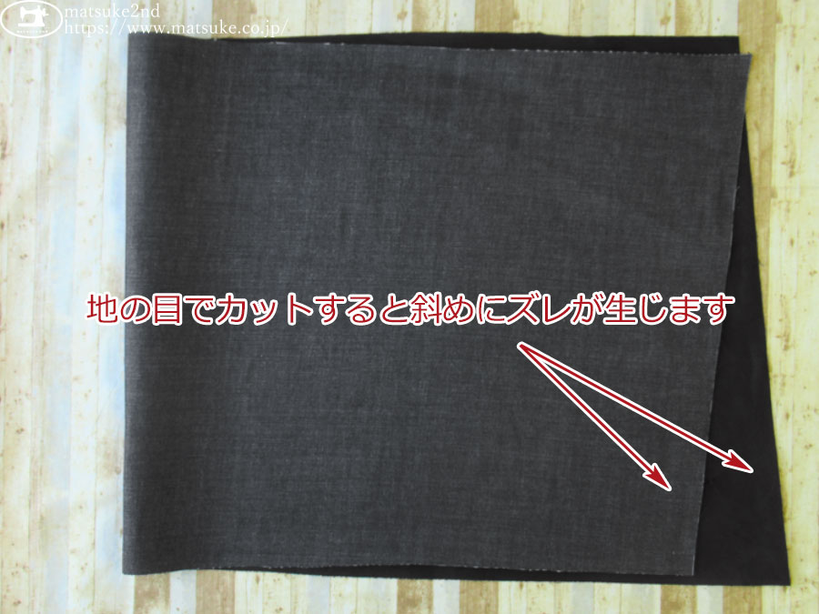 ※こちらの生地は地の目でカットすると斜めにズレが生じますのでご了承ください。