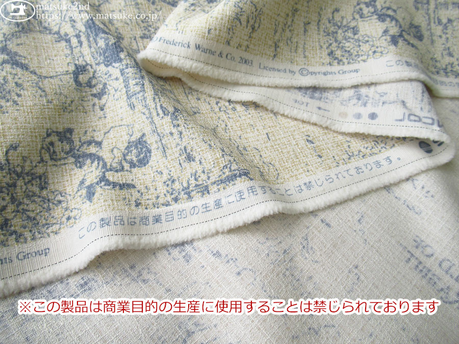 お買い得! 【アパレル使用反】 防炎ポリエステルドビークロスプリント『ピーターラビット‐Peter Rabbit‐』 サンドベージュ×くすみブルー系約148cm幅