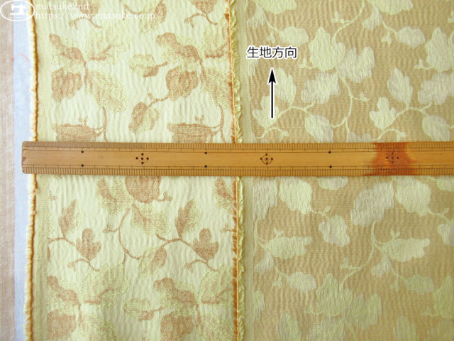 やや凹凸とした模様とグログラン調の織りが組み合わさった、表情豊かなポリエステルジャガード生地です。