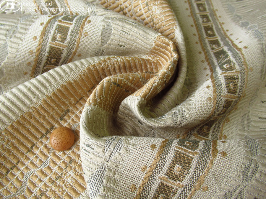 凹凸のある立体的な織で表現された、エスニック調の柄が魅力の合繊ジャガード生地です。