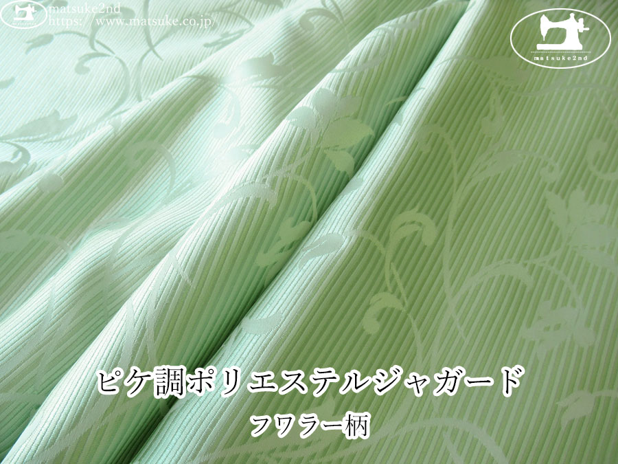 やや凹凸とした模様とピケ調の織りが組み合わさった、表情豊かなポリエステルジャガード生地です。