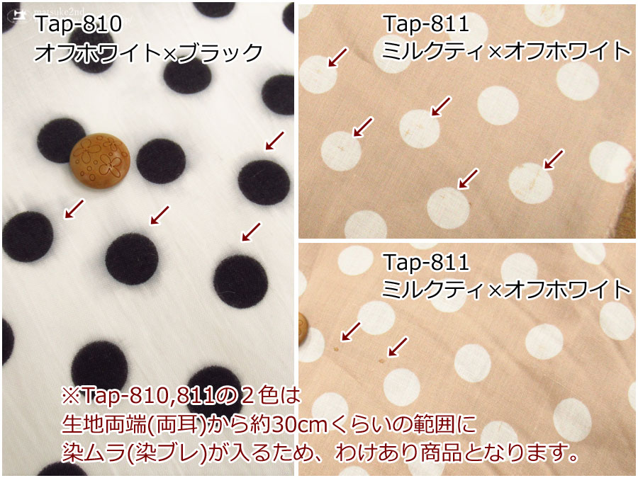 ※Tap-810とTap-811は生地両端(両耳)から約30cmくらいの範囲に