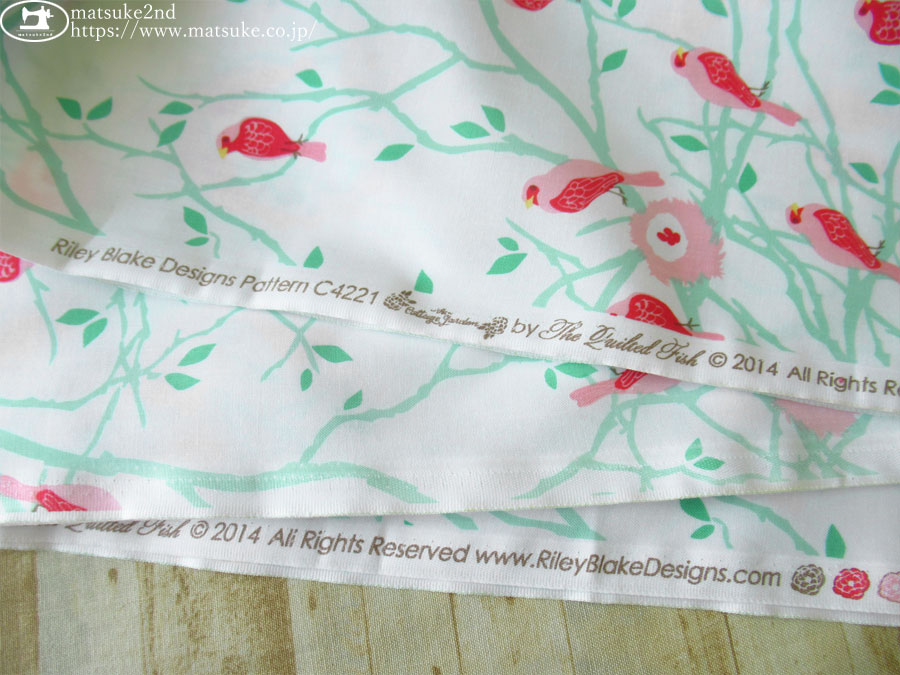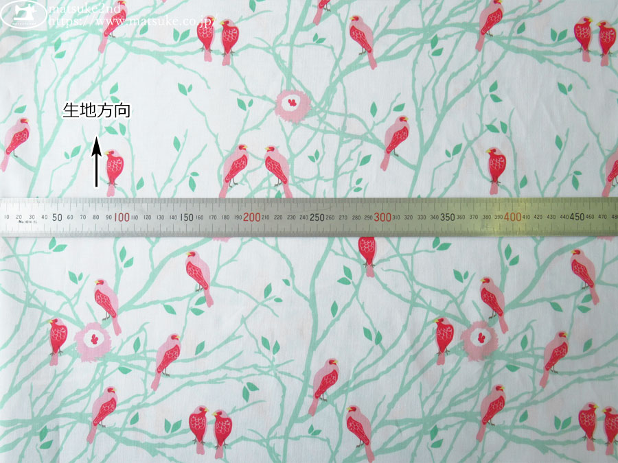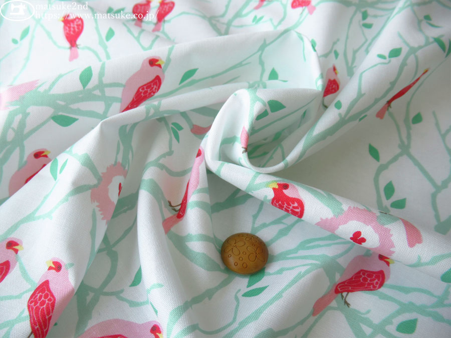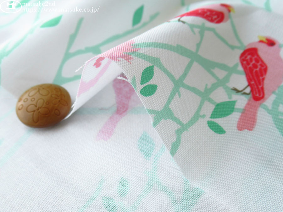 小枝にピンク色の小鳥がたたずむ姿がデザインされたオシャレなファブリック♪
