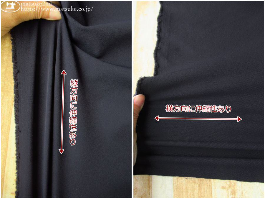 適度にハリ感があり、シャカッとした肌当たりのストレッチ生地です。