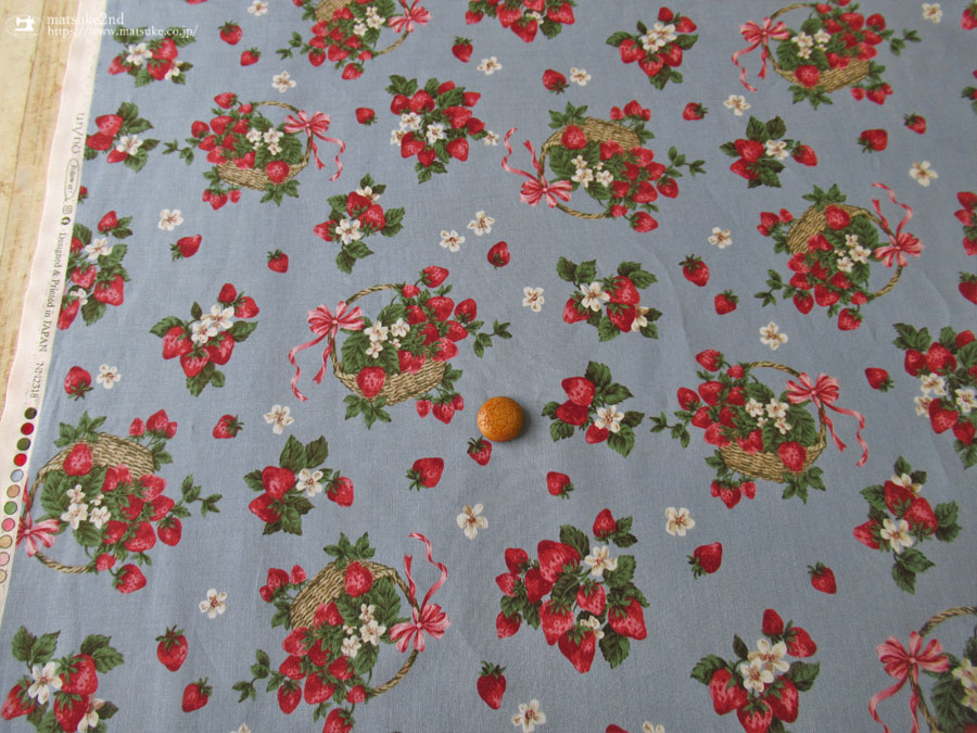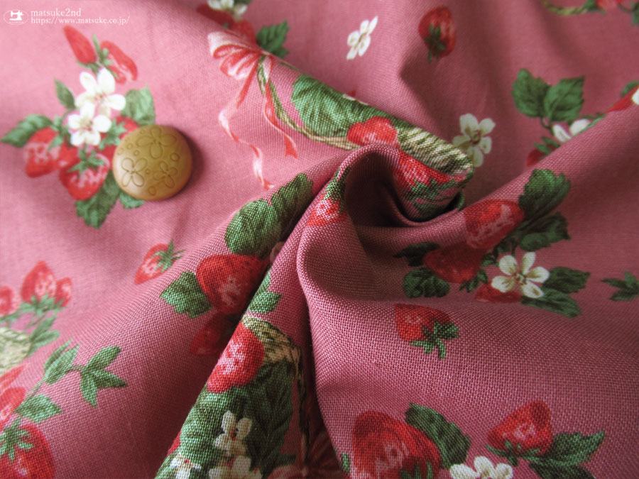 上品でアンティークな雰囲気のまっかなイチゴが目を引くラブリーなイチゴ柄のファブリックです。