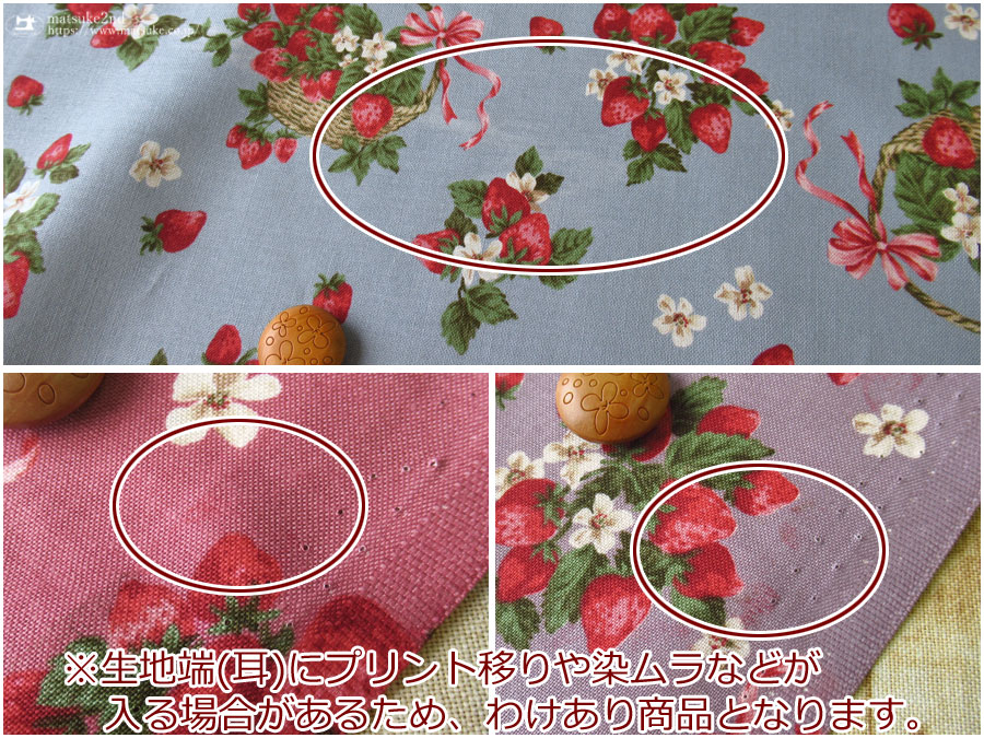 ※染ムラや生地端(耳)にプリント移りなどが入る場合があるため、わけあり商品となります。