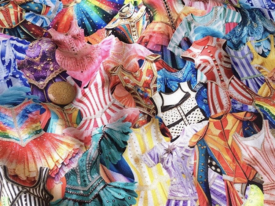 エイミー・スチュワートが描くユーモアなサーカスコスチュームデザインの ファブリックが登場です!