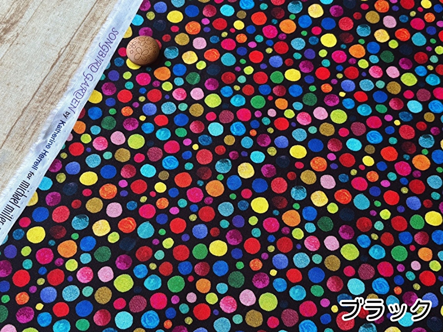 お買い得!【コットン USAプリント】 Michael Miller Fabrics * SONGBIRD GARDEN 『 Colorful polka dot 』 ブラック