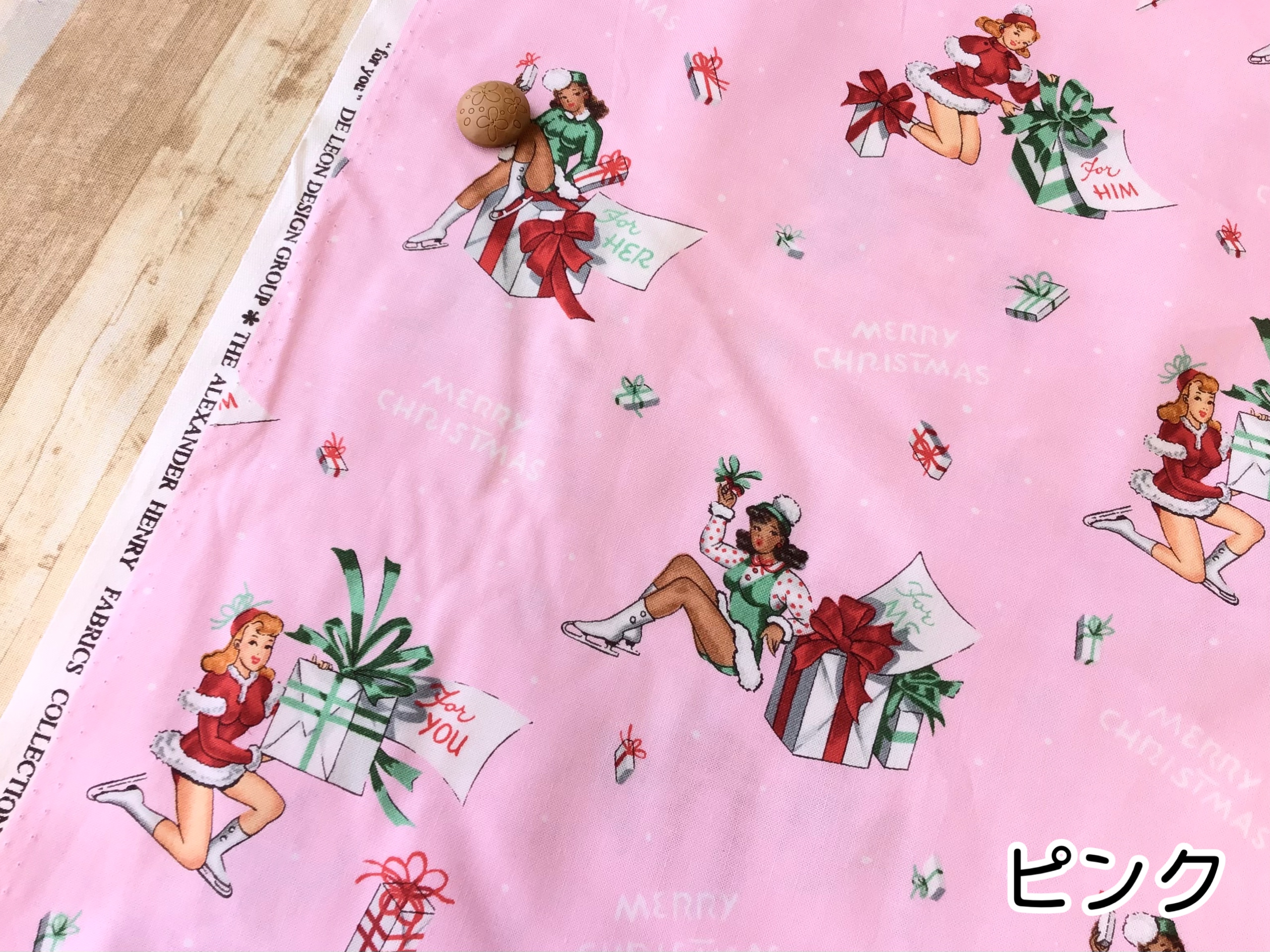 プレゼントを持っている可愛らしいファブリックです。
