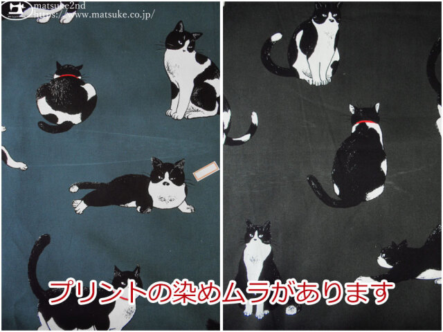 自由気ままなハチワレねこがデザインされた、猫好きさんに刺さるファブリックです!