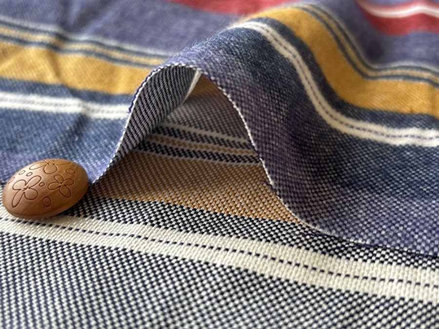 TOP デッドストック反布帛系コットン系 秋冬物生地起毛素材(ネル他) アウトレット生地コットン アウトレット生地コットン素材で探すコットン系 アウトレット生地コットン柄で探すその他 コットンその他 新着商品[2025年]新着商品[2025年9月]新着商品[2025/9/16] お買い得!【デッドストック反】 表起毛T/Cマルチボーダー 110cm幅 コットン、ポリエステル(混紡率不明) 生地の表面がふんわりと起毛した寒い時期にぴったりの生地です。 一般的なフランネル生地くらいの厚みで、 やわらかで肌触りがよく、軽めの生地です。 秋冬のシャツやブラウスなどのトップスや スカートやワンピースなどのお洋服にいかがでしょうか。 ボタンの大きさは2cm お買い得!【デッドストック反】 表起毛T/Cマルチボーダー 価格: ¥290 (税込 ¥319) [ポイント還元 3ポイント~] 販売期間: 数量: ×50cm 品番/カラー在庫購入Tcp-2869 レッド系○ Tcp-2870 ネイビーブルー系× 品番/カラー在庫購入Tcp-2869 レッド系○ Tcp-2870 ネイビーブルー系× 返品についての詳細はこちら