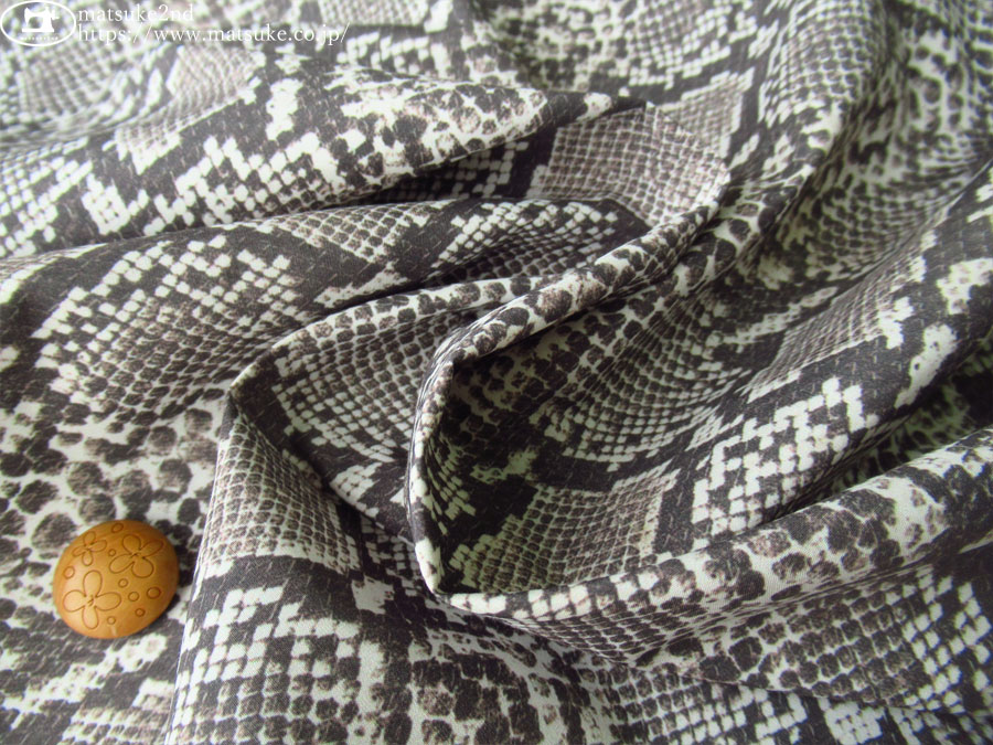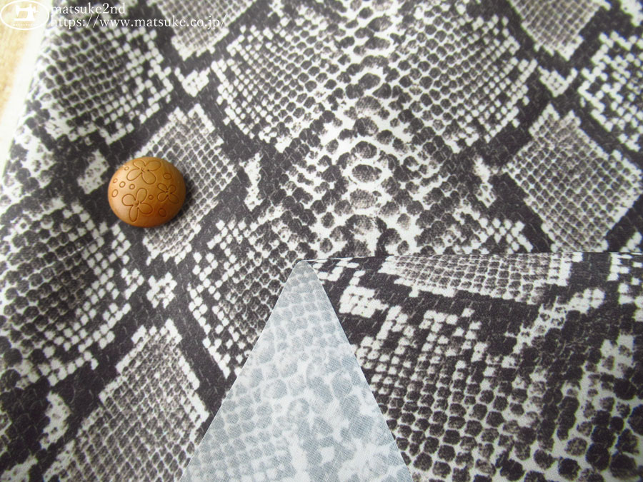 TOP 春夏物生地合繊 デッドストック反布帛系 デッドストック反布帛系その他 アウトレット生地合繊 柄でさがすリアルプリント 合繊 新着商品[2025年]新着商品[2025年9月]新着商品[2025/9/2] お買い得!【デッドストック反】 タイプライター風ナイロン*パイソン柄デジタルプリント チャコール系 約136cm幅 ナイロン(混紡率不明) インパクトのあるリアルなパイソン柄のファブリックです。 密度を込めて打ち込んだタイプライター風の生地で、一般的なローンくらいの厚みです。 しなやか且つハリのある生地で、針通りの良さそうな素材になります。 シャカッとした肌当たりで、生地が擦れるとシャカシャカと音がなります。 シャツ、ブラウス、スカートなどのお洋服、またはインテリア資材にいかがでしょうか。 ボタンの大きさは2cm お買い得!【デッドストック反】 タイプライター風ナイロン*パイソン柄デジタルプリント チャコール系 価格: ¥330 (税込 ¥363) [ポイント還元 3ポイント~] 販売期間: 数量: ×50cm 品番/カラー在庫購入Tcp-2903 チャコール系△ 品番/カラー在庫購入Tcp-2903 チャコール系△ 返品についての詳細はこちら