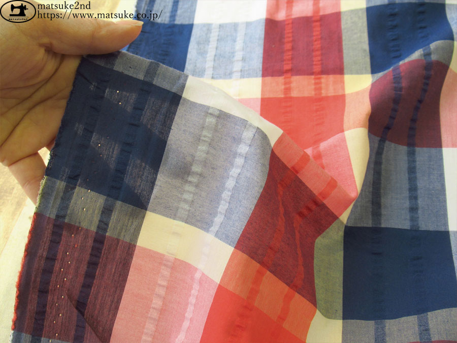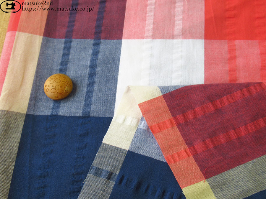 TOP 春夏物生地リップル・サッカー生地 アウトレット生地コットン アウトレット生地コットン柄で探すチェック・ドット・ストライプ アパレル使用反布帛系 アパレル使用反布帛系素材コットンコットン100% アパレル使用反布帛系柄チェック・ドット・ストライプ・ボーダー コットン コットンドット・チェック・ストライプ コットンコットン100% 新着商品[2026/3/3] お買い得!【アパレル使用反】 暑い季節にぴったり!カラフルチェック綿サッカー カラフル系 144cm幅 コットン100% 部分的に縮ませて波状の凹凸を表現したサッカー素材です。 凹凸により肌に触れる面積が少なく、汗ばむ季節もさらりと快適です。 やや薄手の平織生地で、ブロード地程度程度の厚みです。 生地自体はしなやかで、軽く、針通りの良い扱いやすい素材になります。 綿特有の清涼感があり、さらっとした肌触りです。 ブラウスやワンピースなど、涼やかなアイテム作りにおすすめです。 ワンピース・ブラウス・スカートなどの夏物のお洋服、または浴衣や甚平にいかがでしょうか。 ボタンの大きさは2cm お買い得!【アパレル使用反】 暑い季節にぴったり!カラフルチェック綿サッカー カラフル系 価格: ¥340 (税込 ¥374) [ポイント還元 3ポイント~] 販売期間: 数量: ×50cm 品番/カラー在庫購入Tcp-3273 カラフル系○ 品番/カラー在庫購入Tcp-3273 カラフル系○ 返品についての詳細はこちら