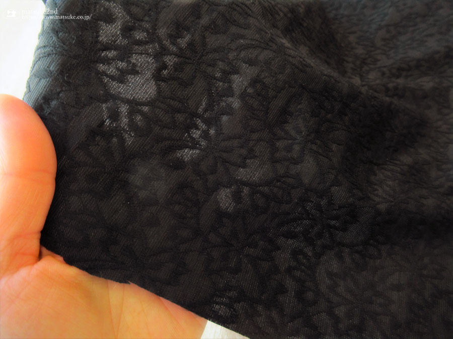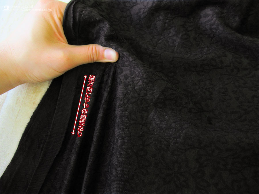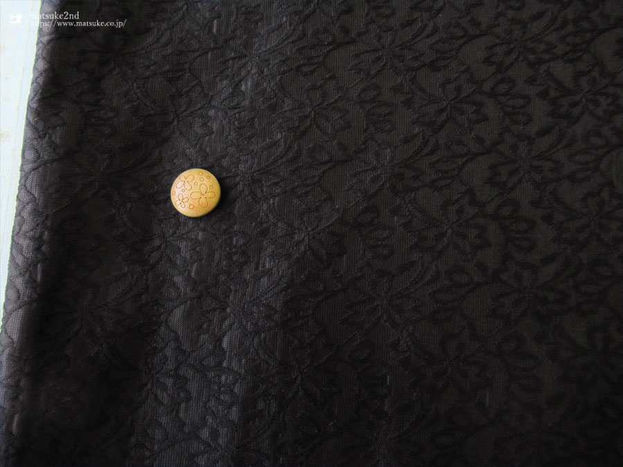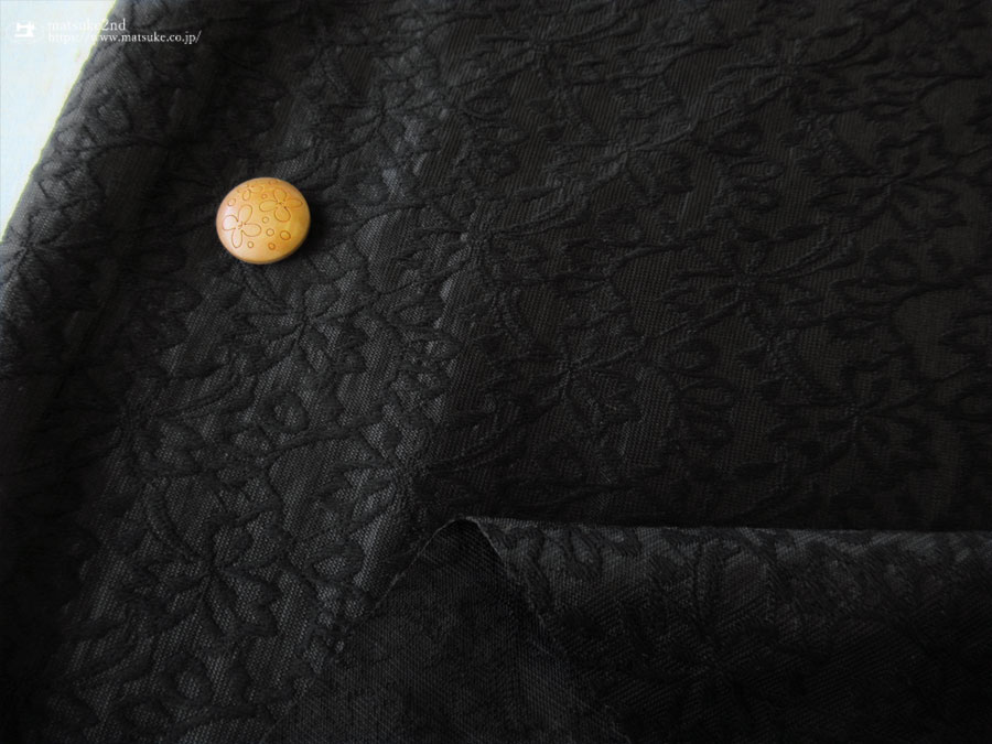 TOP 春夏物生地ニット生地 アウトレット生地ニット地 デッドストック反ニット地 ニット生地種類でさがすその他 ニット生地素材でさがす合繊ポリエステル ニット生地柄でさがす花/植物柄 新着商品[2026/4/24] 【デッドストック反】 ボタニカルジャガードトリコット ブラック 約180cm幅 ポリエステル(混紡率不明) テンションほぼ無(縦方向にわずかに伸びます) 凹凸のあるジャガード織で立体的なボタニカル柄がオシャレなトリコット生地です。 一般的なTシャツ地よりはやや薄手で、光にかざしてほんのり透ける程度の透け感があります。 比較的目の詰まった生地で、少しハリのある風合いです。 ベース地は艶やかな光沢があり、 浮き出たジャガード部分はマットな質感です。なめらかな肌触りが魅力です。 縦方向にわずかに伸縮性があります。 アウターウェア、スポーツウェアなどにいかがでしょうか。 ボタンの大きさ2cm 【デッドストック反】 ボタニカルジャガードトリコット ブラック 価格: ¥200 (税込 ¥220) [ポイント還元 2ポイント~] 販売期間: 数量: ×50cm 品番/カラー在庫購入Tcp-3320 ブラック○ 品番/カラー在庫購入Tcp-3320 ブラック○ 返品についての詳細はこちら
