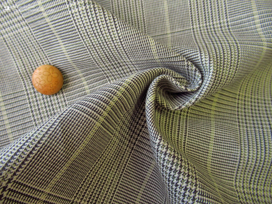 ▼お買い得!【デッドストック反】 約114cm幅 グレンチェックコットン サンドグレー×ライトグリーン系