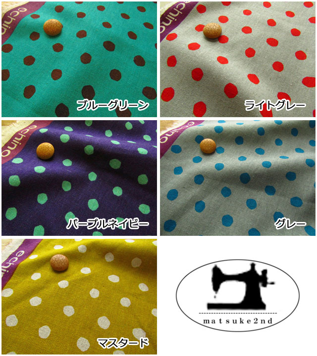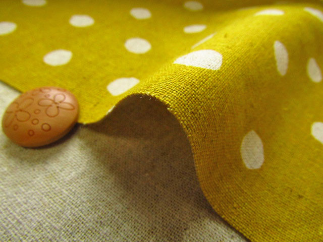 TOP デザイナー生地echino 綿麻・麻生地チェック・ストライプ・ドット 【ハーフリネンキャンバス】echino 2017*Standard*(エチノ2017*スタンダード) 『 Dot 』 108cm幅 コットン45%リネン55% 古家悦子さんのテキスタイル、『 echino 』、『 Standard 』にドット柄が登場しました。 echinoらしい鮮やかな色合いと、手で描いたようなナチュラルなドットがステキなファブリック。 生地はやや薄手でしっかりとしたハーフリネンキャンバスです。 エプロンやバッグ・ポーチ、巾着袋などの小物雑貨、 クッションカバーなどのインテリアなどにいかがでしょうか。 ボタンの大きさは2cm 【ハーフリネンキャンバス】echino 2017*Standard*(エチノ2017*スタンダード) 『 Dot 』 価格: ¥750 (税込 ¥825) [ポイント還元 8ポイント~] 販売期間: 数量: ×50cm カラー在庫購入ap-1169 ブルーグリーン× ap-1170 ライトグレー[完売]× ap-1171 パープルネイビー× ap-1172 グレー[完売]× ap-1173 マスタード[完売]× カラー在庫購入ap-1169 ブルーグリーン× ap-1170 ライトグレー[完売]× ap-1171 パープルネイビー× ap-1172 グレー[完売]× ap-1173 マスタード[完売]× 返品についての詳細はこちら