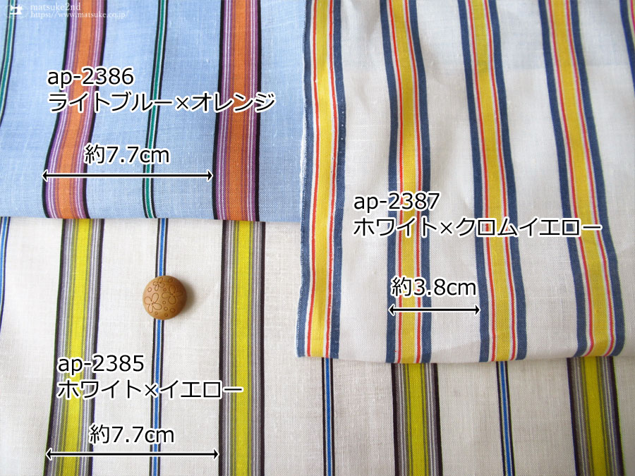 TOP 春夏物生地麻・綿麻 綿麻・麻生地チェック・ストライプ・ドット 綿麻・麻生地混紡率で探す麻100% 新着商品[2025年]新着商品[2025年1月~6月]新着商品[2025年6月]新着商品[2025/6/24] 新着商品[2025年]新着商品[2025年8月]新着商品[2025/8/12] 【リネン100%】 マルチストライプリネン 約135cm幅 リネン100% ブルーやイエローの配色のマルチストライプ柄が爽やかでステキな生地です。 やや薄手の比較的目のつまったリネン生地ですが、少し透け感があります。 サラッとした肌触りの生地でチクチク感はさほど感じられません。 ※生地の特性上、繊維カスや織りキズ、ネップが入る場合があります。ご了承ください。 シャツやチュニックなどのトップスやワンピースなどのお洋服や バッグや小物、 エプロンやインテリア等にいかがでしょうか。 ボタンの大きさは2cm 【リネン100%】 マルチストライプリネン 価格: ¥600 (税込 ¥660) [ポイント還元 6ポイント~] 販売期間: 数量: ×50cm 品番/カラー在庫購入ap-2385 ホワイト×イエロー○ ap-2386 ライトブルー×オレンジ○ ap-2387 ホワイト×クロムイエロー○ 品番/カラー在庫購入ap-2385 ホワイト×イエロー○ ap-2386 ライトブルー×オレンジ○ ap-2387 ホワイト×クロムイエロー○ 返品についての詳細はこちら