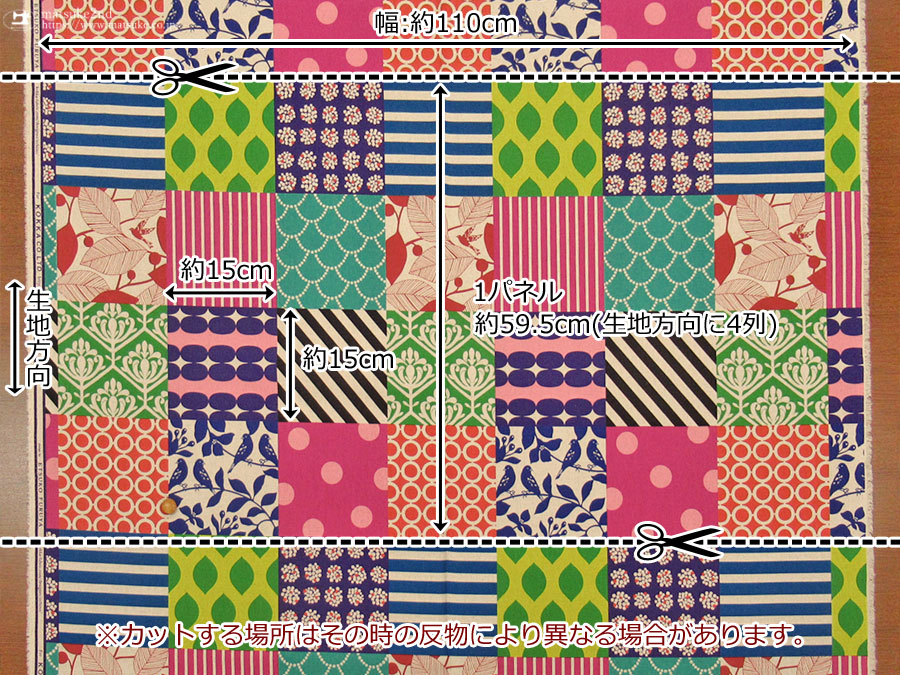 パッチワークのようにいろいろなピースがつながって柄になっています。