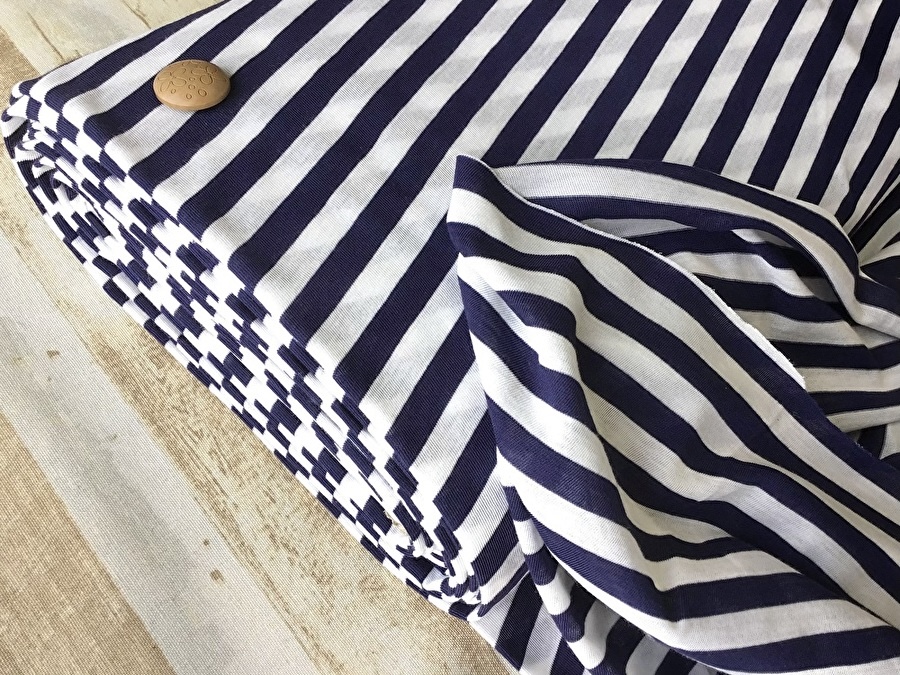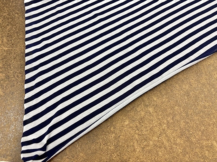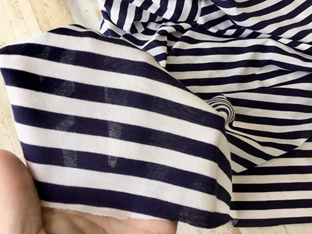 【反売り】薄手ボーダー斜行天竺ニット ネイビー×オフ系[ 幅140cm×約11.5m巻 ]