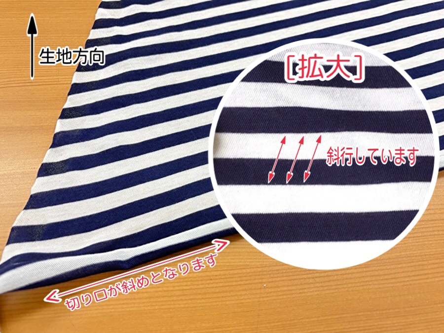 ※生地の織り目が斜行しています。