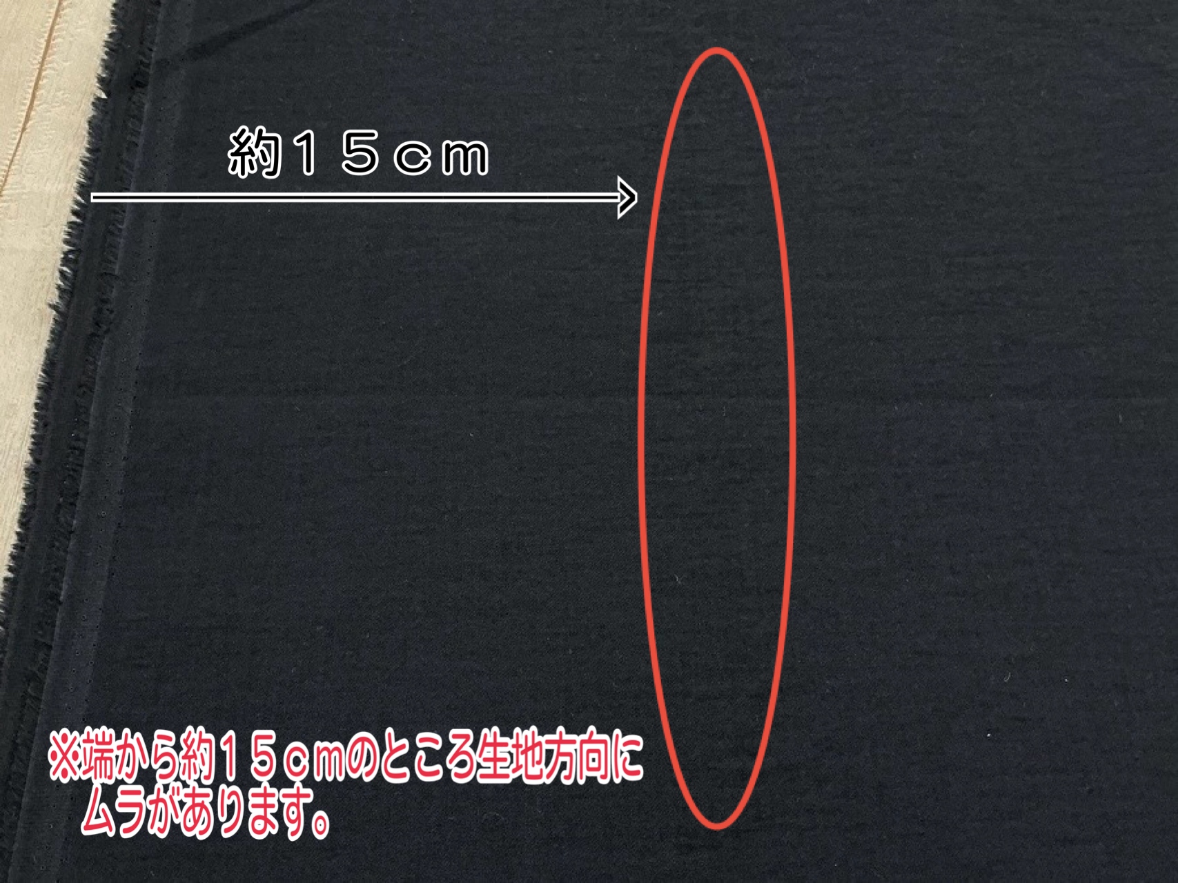 ※生地端から約15cmのところ生地方向にムラがあります。