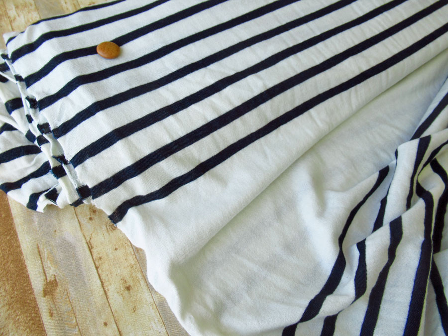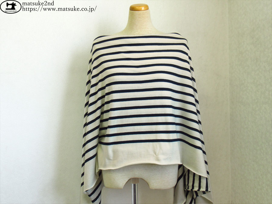 わけあり!【反売り】 パネル柄/ボーダーソフト天竺ニット くすみアイボリー×ネイビー系 [ 幅140cm×約4.3m巻(4パネル)巻 ]