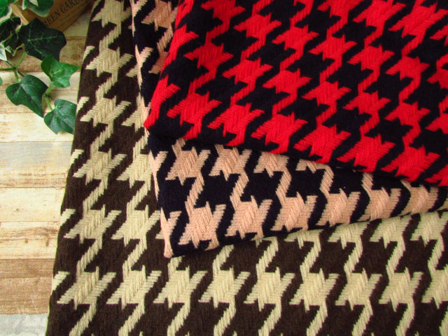 TOP 秋冬物生地ウール定番・その他 プライスダウン秋冬物生地 プライスダウンウール 20%OFF!ウールツイード 『 B I G C H I D O R I (ビッグ 千鳥)』 135cm幅 ウール90%ナイロン10% やや大き目の千鳥柄がおしゃれな、 やや厚手の比較的やわらかく、さほどチクチク感は感じられないウール生地です。 ジャケットやコート、スカートやボトムなどのお洋服や バックや小物など冬物のアイテムなどにいかがでしょうか。 ボタンの大きさは2cm 20%OFF!ウールツイード 『 B I G C H I D O R I (ビッグ 千鳥)』 当店希望小売価格: ¥990(税込) 価格: ¥719 (税込 ¥791) 20%OFF [ポイント還元 7ポイント~] 販売期間: 数量: ×50cm カラー在庫購入np-1685 ライトべージュ×ブラウン[完売]× np-1686 フラミンゴピンク×ブラック[完売]× np-1687 レッド×ブラック△ カラー在庫購入np-1685 ライトべージュ×ブラウン[完売]× np-1686 フラミンゴピンク×ブラック[完売]× np-1687 レッド×ブラック△ 返品についての詳細はこちら