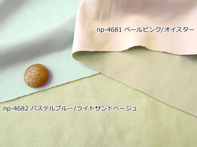 TOP 春夏物生地ニット生地 デッドストック反ニット地 ニット生地柄でさがす無地グレー/チャコール系 ニット生地柄でさがす無地ネイビー系 ニット生地柄でさがす無地その他 ニット生地素材でさがすその他 ニット生地種類でさがすその他 【デッドストック反】ベアリバーシブルニット 155cm幅 ポリエステル・ポリウレタン ( 混紡率不明 ) テンション高 やや光沢のある面とコットンタッチの面が表裏となった リバーシブルニットです。 撮影はやや光沢のある面を表にしております。 一般的なTシャツ地くらいの厚みの生地で、 比較的、やわらかで滑らかな肌触りです。 縦横の方向に伸縮しますが、横方向の方によく伸びます。 アンダーウェアやスポーツウェアなど、 体にフィットするデザインのお洋服などにいかがでしょうか。 ボタンの大きさは2cm 【デッドストック反】ベアリバーシブルニット 価格: ¥380 (税込 ¥418) [ポイント還元 4ポイント~] 販売期間: 数量: ×50cm 品番/カラー在庫購入np-4681 ペールピンク/オイスター○ np-4682 パステルブルー/ライトサンドベージュ△ np-4683 ミントグリーン/杢グレー△ np-4684 ライラック/ベージュ○ np-4685 レタスグリーン/オリーブ[完売]× np-4686 バーミリオン/オーカー[完売]× np-4687 ピジョンブルー/ネイビー[完売]× np-4688 グレー/ブラック[完売]× 品番/カラー在庫購入np-4681 ペールピンク/オイスター○ np-4682 パステルブルー/ライトサンドベージュ△ np-4683 ミントグリーン/杢グレー△ np-4684 ライラック/ベージュ○ np-4685 レタスグリーン/オリーブ[完売]× np-4686 バーミリオン/オーカー[完売]× np-4687 ピジョンブルー/ネイビー[完売]× np-4688 グレー/ブラック[完売]× 返品についての詳細はこちら