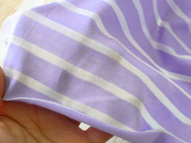TOP アパレル使用反ニット生地 春夏物生地ニット生地 ニット生地柄でさがすボーダー柄【春/夏向け】 ニット生地種類でさがす天竺ニット ニット生地素材でさがすコットンその他 アウトレット生地ニット地 【アパレル使用反】 やや薄手 ラメ入り天竺ボーダーニット ライトバイオレット×オフ 【アパレル使用反】 やや薄手 ラメ入り天竺ボーダーニット ライトバイオレット×オフ 160cm幅 コットン94%、ポリエステル3%、ナイロン3% テンション中 一般的なTシャツ地よりやや薄手の生地で、 やや透け感のある比較的やわらかな肌触りの天竺ニットです。 ボーダー柄のオフのところにシルバーのラメが織り込まれておりキラキラとしています。 横方向に適度に伸縮性があります。 プルオーバータイプのトップスやチュニックなどのお洋服にいかがでしょうか。 ※ボタンの大きさ2cm 【アパレル使用反】 やや薄手 ラメ入り天竺ボーダーニット ライトバイオレット×オフ 価格: ¥240 (税込 ¥264) [ポイント還元 2ポイント~] 販売期間: 数量: ×50cm 品番/カラー在庫購入np-4972 ライトバイオレット×オフ○ 品番/カラー在庫購入np-4972 ライトバイオレット×オフ○ 返品についての詳細はこちら