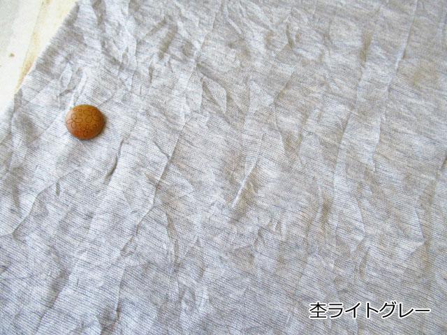 TOP デッドストック反ニット地 春夏物生地ニット生地 ニット生地柄でさがす無地グレー/チャコール系 ニット生地種類でさがす天竺ニット ニット生地素材でさがすその他 【デッドストック反】 舶来シワ加工天竺風ニット 145cm幅 ポリエステル・レーヨン・その他(混紡不明) テンション中~やや高 クシャッとした生地表面がナチュラルでステキな舶来(フランス製)の生地です。 一般的なTシャツ地くらいの厚みの生地で、 比較的やわらかでなめらかな肌触りの天竺風のニットです。 縦横方向に伸縮しますが、横方向のほうがよく伸びます。 プルオーバータイプのトップスやチュニックなどのお洋服にいかがでしょうか。 ボタンの大きさは2cm 【デッドストック反】 舶来シワ加工天竺風ニット 価格: ¥240 (税込 ¥264) [ポイント還元 2ポイント~] 販売期間: 数量: ×50cm 品番/カラー在庫購入np-5386 杢ライトグレー○ np-5387 杢グレー[完売]× 品番/カラー在庫購入np-5386 杢ライトグレー○ np-5387 杢グレー[完売]× 返品についての詳細はこちら