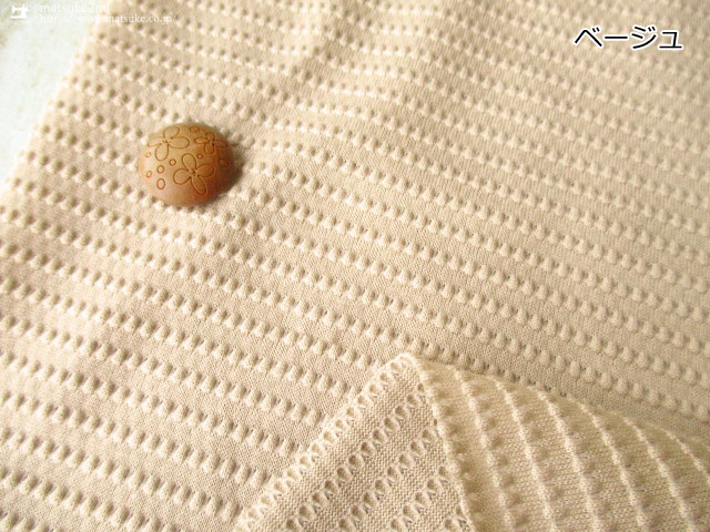 TOP 春夏物生地ニット生地 アパレル使用反ニット生地素材コットン アパレル使用反ニット生地柄チェック・ドット・ストライプ・ボーダー アウトレット生地ニット地 ニット生地種類でさがす天竺ニット ニット生地柄でさがすボーダー柄【春/夏向け】 ニット生地素材でさがすコットンその他 【アパレル使用反】 ぽこぽこボーダー天竺ニット 【アパレル使用反】 ぽこぽこボーダー天竺ニット 145cm幅 コットン92%、ナイロン6%、ポリウレタン2% テンション中 一般的な薄手のTシャツ地くらいの厚みがあり、 ぽこぽこと立体感のあるボーダー柄がかわいい天竺ニットです。 比較的やわらかで、肌触りのいい生地です。 縦横方向に伸縮性がありますが、横方向によく伸びます。 プルオーバータイプのトップスやチュニックなどのお洋服にいかがでしょうか。 ボタンの大きさは2cm 【アパレル使用反】ぽこぽこボーダー天竺ニット 価格: ¥380 (税込 ¥418) [ポイント還元 4ポイント~] 販売期間: 数量: ×50cm 品番/カラー在庫購入np-5932 ベージュ○ np-5933 ライトブルー[完売]× 品番/カラー在庫購入np-5932 ベージュ○ np-5933 ライトブルー[完売]× 返品についての詳細はこちら