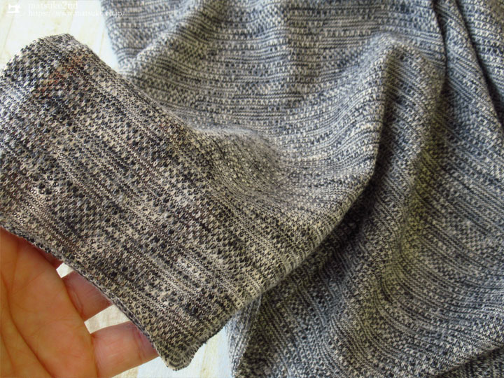 TOP 秋冬物生地ニット地 アウトレット生地ニット地 デッドストック反ニット地 ニット生地種類でさがすジャガードニット ニット生地柄でさがすその他の柄 ニット生地素材でさがすコットンその他 【デッドストック反】ウールタッチのジャガードニット チャコール系 145cm幅 コットン、その他 テンション中 ムラ感のある色味が素敵なウールタッチのジャガードニットです。 肌触りも見た目もウール混生地のような風合いです。 一般的なTシャツ地くらいの厚みがあり、 比較的やわらかで肌触りのいい生地です。 光にかざすとやや透け感があります。 横方向に伸縮性があります。 プルオーバータイプのトップスやチュニックなどのお洋服にいかがでしょうか。 ボタンの大きさは2cm 【デッドストック反】ウールタッチのジャガードニット チャコール系 価格: ¥330 (税込 ¥363) [ポイント還元 3ポイント~] 販売期間: 数量: ×50cm 品番/カラー在庫購入np-6699 チャコール系× 品番/カラー在庫購入np-6699 チャコール系× 返品についての詳細はこちら