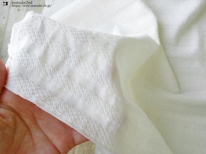 TOP 春夏物生地ニット生地 アウトレット生地ニット地 ニット生地種類でさがすジャガードニット ニット生地柄でさがす無地ホワイト/ナチュラル系 ニット生地柄でさがす無地グレー/チャコール系 ニット生地柄でさがす無地ネイビー系 ニット生地柄でさがすボーダー柄【春/夏向け】 ニット生地素材でさがすコットンコットン100% アパレル使用反ニット生地 アパレル使用反ニット生地素材コットン アパレル使用反ニット生地柄チェック・ドット・ストライプ・ボーダー 【アパレル使用反】ドビーボーダージャガードニット 145cm幅 コットン100% テンション中 やや立体感のあるドビーボーダーがオシャレなジャガードニットです。 一般的なTシャツ地くらいの厚みがあり、 さらっと優しい肌触りのやわらかな生地です。 横方向に伸縮性があります。 プルオーバータイプのトップスやチュニックなどのお洋服にいかがでしょうか。 ボタンの大きさは2cm 【アパレル使用反】ドビーボーダージャガードニット 価格: ¥330 (税込 ¥363) [ポイント還元 3ポイント~] 販売期間: 数量: ×50cm 品番/カラー在庫購入np-6845 ネイビー[完売]× np-6846 オフホワイト[完売]× np-6847 杢グレー× 品番/カラー在庫購入np-6845 ネイビー[完売]× np-6846 オフホワイト[完売]× np-6847 杢グレー× 返品についての詳細はこちら