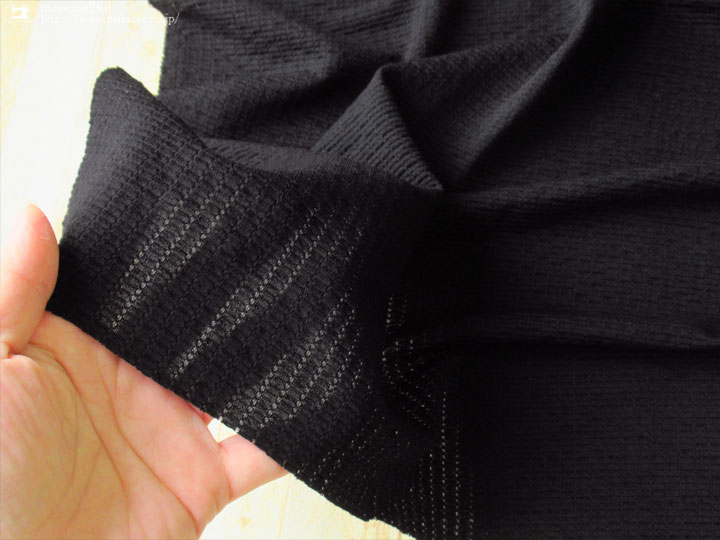 TOP 春夏物生地ニット生地 デッドストック反ニット地 アウトレット生地ニット地 ニット生地種類でさがすジャガードニット ニット生地素材でさがす合繊ポリエステルポリエステル混紡 ニット生地素材でさがすコットンコットン混紡 ニット生地柄でさがす無地ブラック系 【デッドストック反】ぽこぽことした編み模様のT/Cジャガードニット ブラック 170cm幅 コットン、ポリエステル テンション中 ぽこぽことした編み模様が可愛いジャガードニットです。 一般的なTシャツ地くらいの厚みで、柔らかめの生地です。 多少のざらつきはあるもののさらっとした肌触りで、 光にかざすとやや透け感があります。 横方向に伸縮性があり、縦にも少し伸びます。 プルオーバータイプのトップスやチュニックなどのお洋服にいかがでしょうか。 ボタンの大きさは2cm 【デッドストック反】 ぽこぽことした編み模様のT/Cジャガードニット ブラック 価格: ¥200 (税込 ¥220) [ポイント還元 2ポイント~] 販売期間: 数量: ×50cm 品番/カラー在庫購入np-7274 ブラック× 品番/カラー在庫購入np-7274 ブラック× 返品についての詳細はこちら