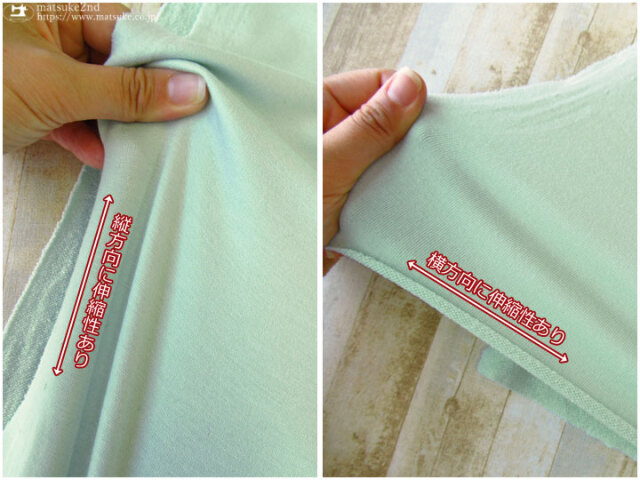 縦横方向に伸縮性があり、横方向によく伸びます。