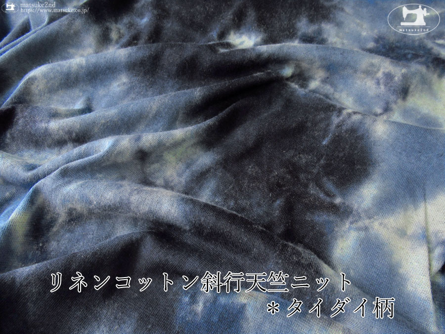 リネン混でナチュラル感とタイダイ柄がダイナミックな柄が個性的な天竺ニットです。