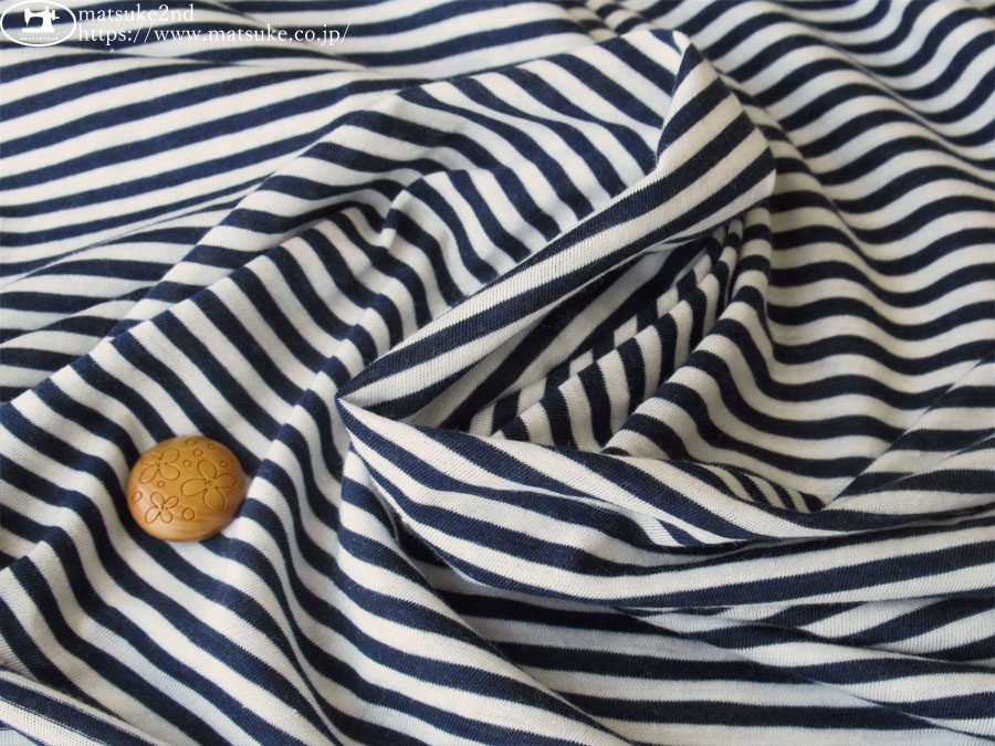 TOP 春夏物生地ニット生地 アウトレット生地ニット地 デッドストック反ニット地 ニット生地種類でさがす天竺ニット ニット生地素材でさがすコットン ニット生地柄でさがすボーダー柄【春/夏向け】 【デッドストック反】 薄手ボーダー斜行天竺ニット ネイビー×オフ 145cm幅 コットン テンション中 一般的な薄手のTシャツ地くらいの厚みで、 肌触りがよく、軽く柔らかな素材です。 肌の色が透ける程度の透け感があります。 横方向に伸縮性があります。 ※生地の織り目が斜行しています。 プルオーバータイプのトップスやチュニックなどのお洋服にいかがでしょうか。 ボタンの大きさは2cm 【デッドストック反】 薄手ボーダー斜行天竺ニット ネイビー×オフ 価格: ¥200 (税込 ¥220) [ポイント還元 2ポイント~] 販売期間: 数量: ×50cm 品番/カラー在庫購入np-8105 ネイビー×オフ○ 品番/カラー在庫購入np-8105 ネイビー×オフ○ 返品についての詳細はこちら