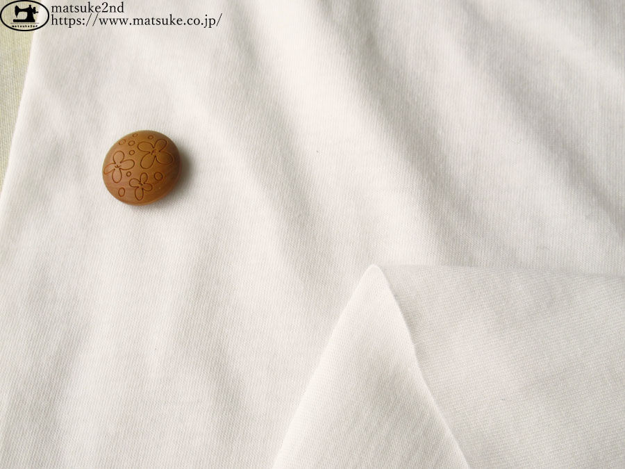 TOP 春夏物生地ニット生地 アウトレット生地ニット地 デッドストック反ニット地 ニット生地種類でさがす天竺ニット ニット生地素材でさがすコットン ニット生地柄でさがす無地ホワイト/ナチュラル系 【デッドストック反】 やや薄手天竺ニット オフホワイト 160cm幅 コットン テンション中 40/-天竺ぐらいのやや薄手の生地で、綿特有のナチュラル感があります。 綿の柔らかさ・肌触りのよさを活かした着心地の良い素材です。 うっすらと肌の色が透ける程度の透け感があります。 横方向に伸縮性があります。 SSシーズンにぴったりな素材で、トップスやチュニックなどにいかがでしょうか。 ボタンの大きさは2cm 【デッドストック反】 やや薄手天竺ニット オフホワイト 価格: ¥200 (税込 ¥220) [ポイント還元 2ポイント~] 販売期間: 数量: ×50cm 品番/カラー在庫購入np-8233 オフホワイト○ 品番/カラー在庫購入np-8233 オフホワイト○ 返品についての詳細はこちら