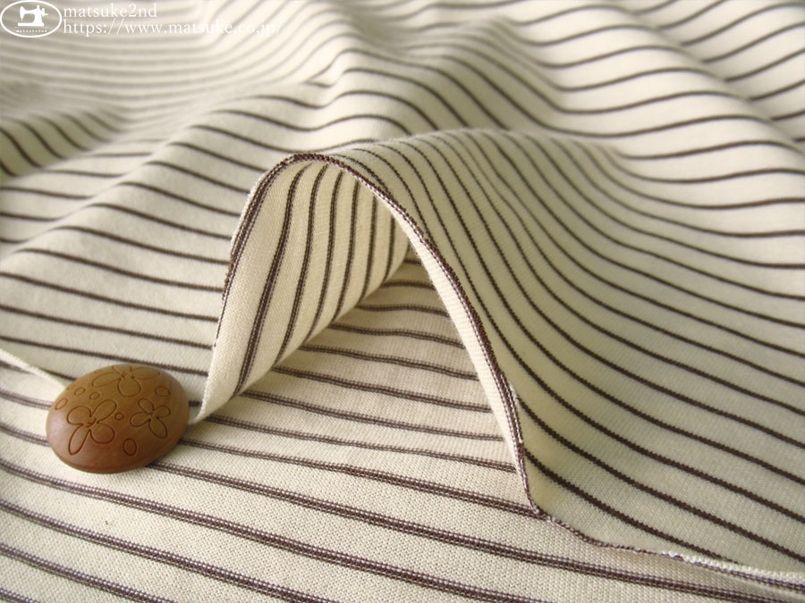 TOP 春夏物生地ニット生地 アウトレット生地ニット地 デッドストック反ニット地 ニット生地種類でさがす天竺ニット ニット生地柄でさがすボーダー柄【春/夏向け】 ニット生地素材でさがすコットン 新着商品[2025年]新着商品[2025年1月~6月]新着商品[2025年2月]新着商品[2025/2/4] 【デッドストック反】 細ボーダー天竺ニット ライトベージュ×ダークブラウン 170cm幅 コットン(混紡率不明) テンション中 一般的なTシャツ地よりはやや薄手で、やわらかくてサラッとした肌触りの天竺ニットです。 濃い色がうっすらと透ける程度の透け感があります。 横方向に伸縮性があります。 プルオーバータイプのトップスやチュニックなどのお洋服にいかがでしょうか。 ボタンの大きさは2cm 【デッドストック反】 細ボーダー天竺ニット ライトベージュ×ダークブラウン 価格: ¥200 (税込 ¥220) [ポイント還元 2ポイント~] 販売期間: 数量: ×50cm 品番/カラー在庫購入np-8725 ライトベージュ×ダークブラウン× 品番/カラー在庫購入np-8725 ライトベージュ×ダークブラウン× 返品についての詳細はこちら