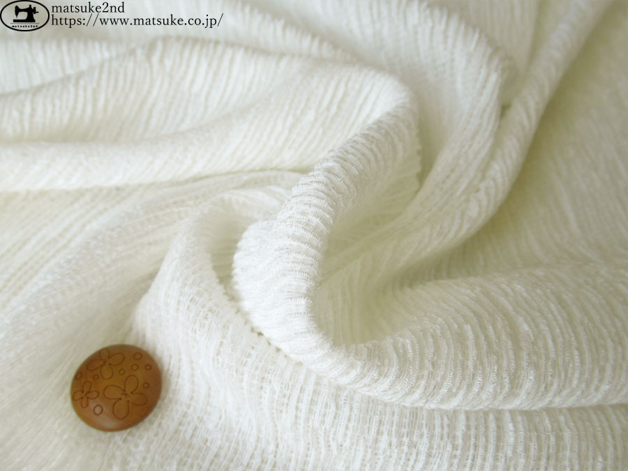 TOP 春夏物生地ローン・ボイル生地 他... アウトレット生地合繊 デッドストック反 デッドストック反布帛系その他 合繊 新着商品[2025年]新着商品[2025年1月~6月]新着商品[2025年6月]新着商品[2025/6/24] お買い得!【デッドストック反】 ふわっと軽やか、シャーリング アイボリー 145cm幅 リヨセル、ポリエステル、ポリウレタン(混紡率不明) 軽やかな薄手の生地にギャザーを寄せてくしゅっとしたシャーリング生地です。 ざっくりとした織で、やや透け感があり涼し気な素材です。 化繊系の肌触りで、汗をかいても生地が肌にはりつきにくい風合いです。 シャーリング生地なので横方向に伸びます。 ※ニット生地ではありません。 ブラウス、キャミワンピ、裏地をつけてスカートなどのお洋服にいかがでしょうか。 ボタンの大きさは2cm お買い得!【デッドストック反】 ふわっと軽やか、シャーリング アイボリー 価格: ¥300 (税込 ¥330) [ポイント還元 3ポイント~] 販売期間: 数量: ×50cm 品番/カラー在庫購入np-9042 アイボリー× 品番/カラー在庫購入np-9042 アイボリー× 返品についての詳細はこちら
