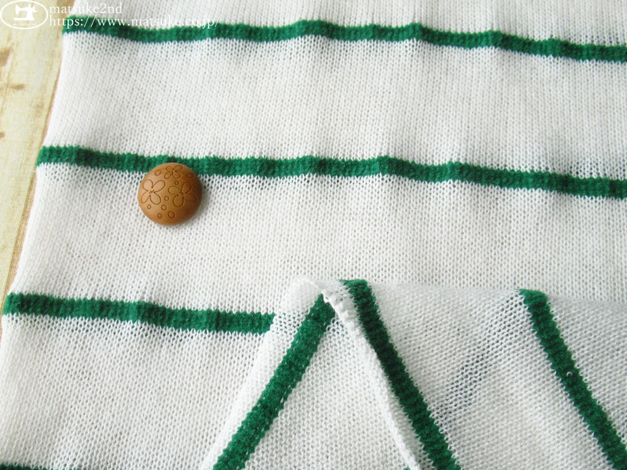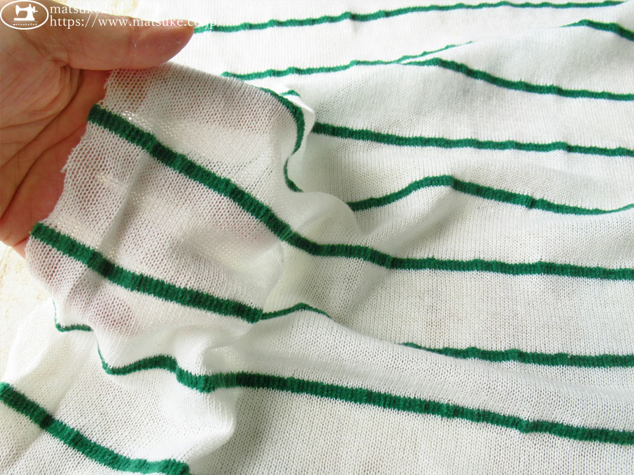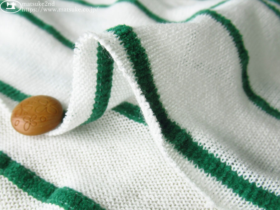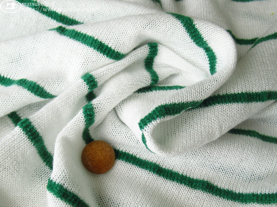 TOP 春夏物生地ニット生地 アウトレット生地ニット地 デッドストック反ニット地 ニット生地柄でさがすボーダー柄【春/夏向け】 ニット生地素材でさがすコットンその他 ニット生地種類でさがすその他 新着商品[2025年]新着商品[2025年1月~6月]新着商品[2025年6月]新着商品[2025/6/24] 【デッドストック反】 ボーダーモールざっくりニット オフホワイト×グリーン 135cm幅 コットン、その他(混紡率不明) テンション中~高 一般的なTシャツ地くらいの厚みで、ざっくりめに編みたてたニット素材です。 ほどよく透け感があり、身体に馴染みやすい柔らかめの生地感です。 グリーンのライン部分にはモールのような質感で、立体感と毛羽があります。 ボーダーのピッチを広くとり、爽やかで大人っぽい印象に仕上がっています。 横方向に伸縮性があります。 プルオーバータイプのトップスやチュニックなどのお洋服にいかがでしょうか。 ボタンの大きさは2cm 【デッドストック反】 ボーダーモールざっくりニット オフホワイト×グリーン 価格: ¥240 (税込 ¥264) [ポイント還元 2ポイント~] 販売期間: 数量: ×50cm 品番/カラー在庫購入np-9047 オフホワイト×グリーン○ 品番/カラー在庫購入np-9047 オフホワイト×グリーン○ 返品についての詳細はこちら