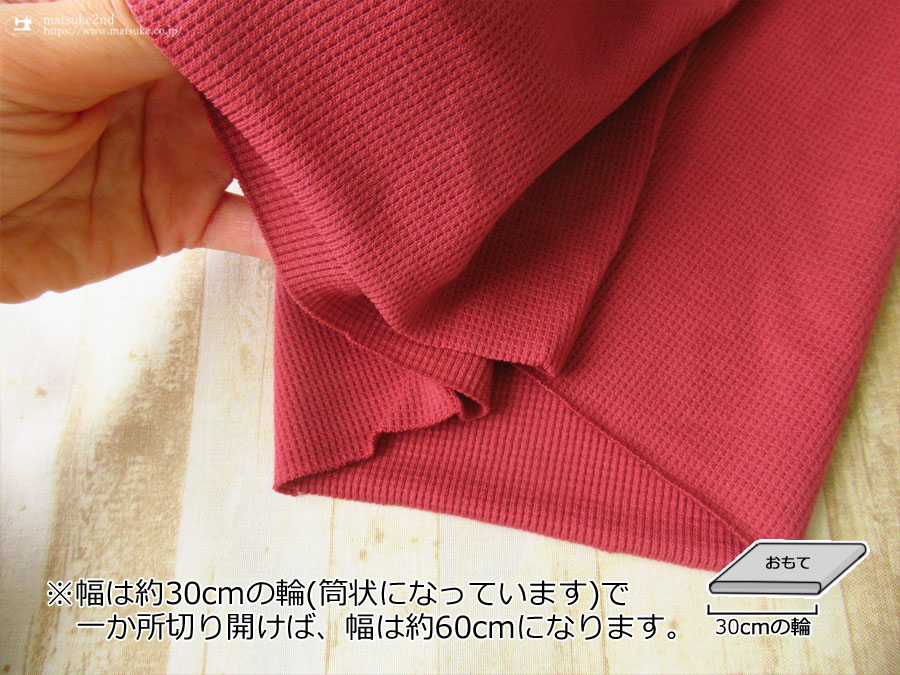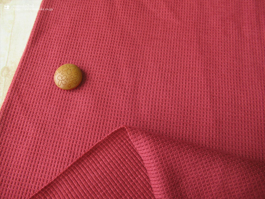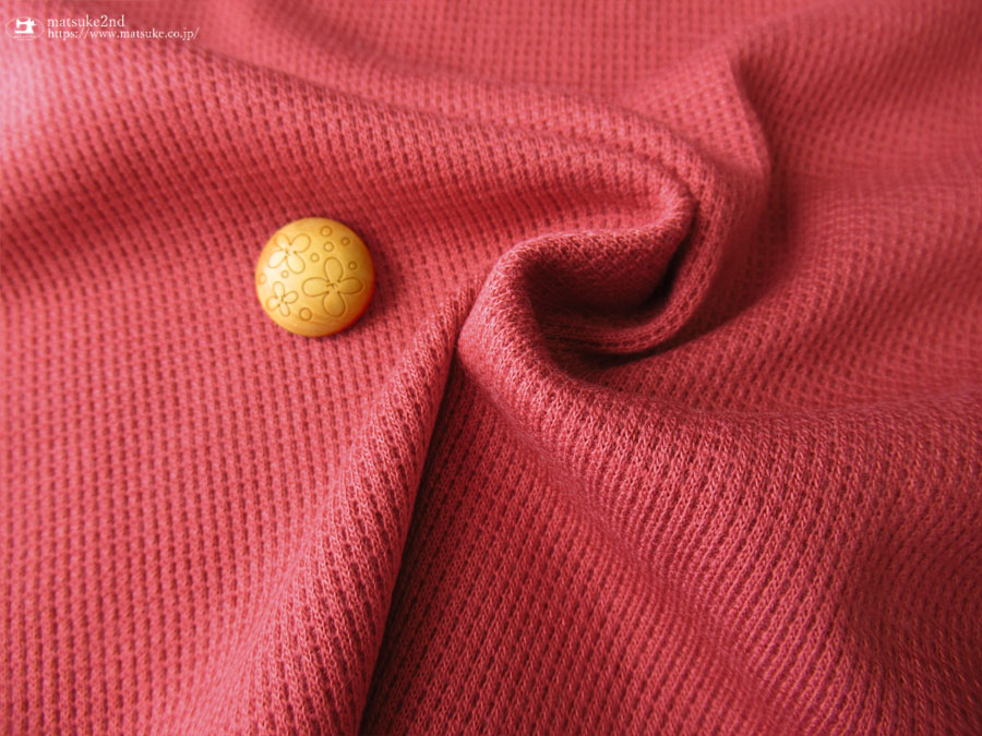 TOP 春夏物生地ニット生地 秋冬物生地ニット地 アウトレット生地ニット地 デッドストック反ニット地 ニット生地種類でさがすテレコ/リブニット ニット生地素材でさがすコットンその他 ニット生地柄でさがす無地その他 新着商品[2025年]新着商品[2025年7月]新着商品[2025/7/22] 【デッドストック反】 約30cm輪 アクリル混ワッフルニット風リブニット えんじいろ 約30cmの輪 ( 約60cm幅 ) アクリル・その他(混紡率不明) テンション中 30/-テレコより若干薄手の生地で、ワッフルニットのようにも見える畝のある生地です。 さらっとした優しい肌触りで、柔らかな風合いの生地です。 襟・袖・裾に使用したり、トップスなどにも幅広く使えそうです。 横方向に伸縮性・キックバックがあります。 ※輪のところが汚れや色やけしている部分が入る場合があります。 襟・袖・裾に使用したり、トップスなどにいかがでしょうか。 ボタンの大きさは2cm 【デッドストック反】 約30cm輪 アクリル混ワッフルニット風リブニット えんじいろ 価格: ¥200 (税込 ¥220) [ポイント還元 2ポイント~] 販売期間: 数量: ×50cm 品番/カラー在庫購入np-9108 えんじいろ× 品番/カラー在庫購入np-9108 えんじいろ× 返品についての詳細はこちら
