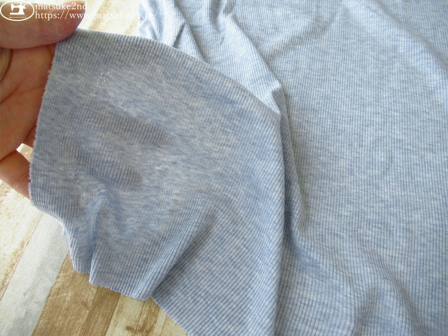 一般的な薄手のTシャツ地程度の厚みで、くったりと落ち感のあるテレコ生地です。