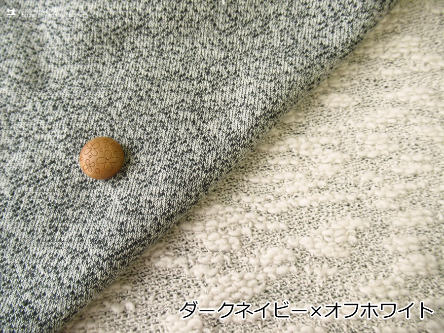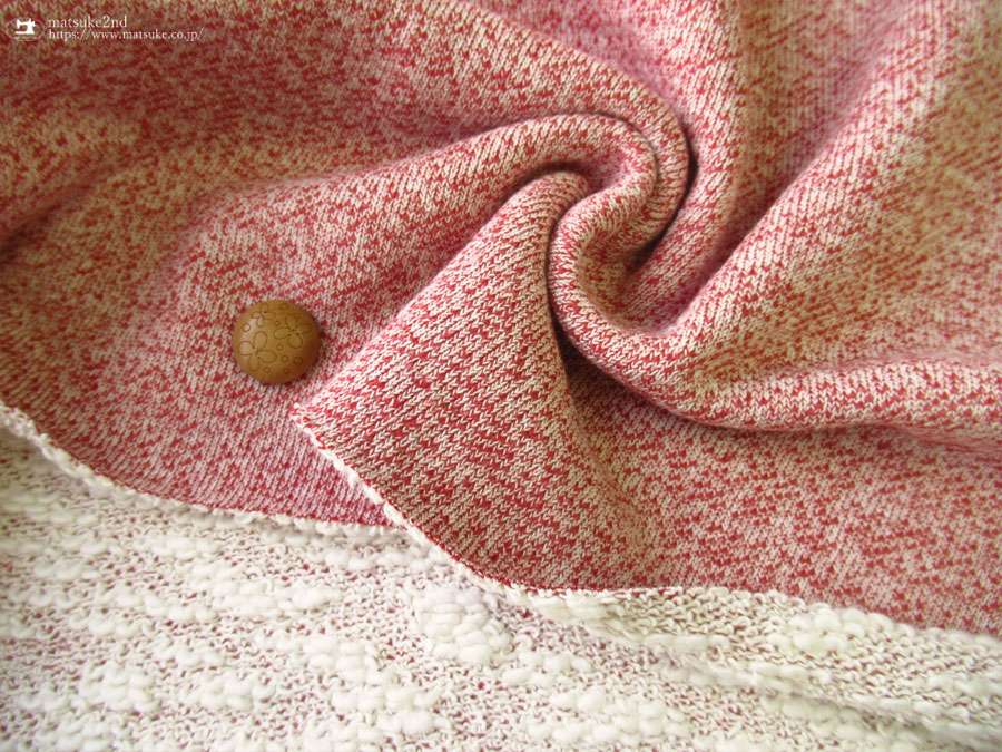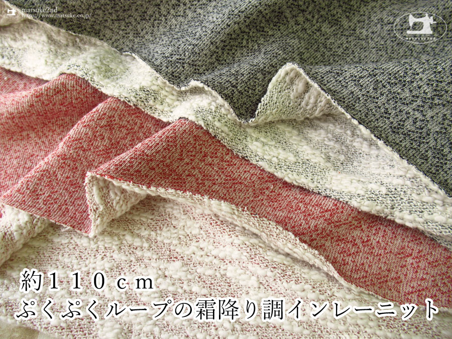 TOP 春夏物生地ニット生地 秋冬物生地ニット地 デッドストック反ニット地 アウトレット生地ニット地 ニット生地種類でさがす裏毛/ミニ裏毛 ニット生地素材でさがすコットン ニット生地柄でさがす無地ホワイト/ナチュラル系 ニット生地柄でさがす無地その他 新着商品[2025年9月]新着商品[2025/9/9] 【デッドストック反】 約110cmぷくぷくループの霜降り調インレーニット 約110cm幅 コットン(混紡率不明) テンション中 ぽこぽこと凹凸感のあるループが目を引く霜降り調のカラーがオシャレな表裏どちらでも使えそうなニット生地です。 一般的な30/10裏毛ニットくらいの厚みで、少し目の詰まった生地です。 横方向に伸縮性があります。 ワンピースやプルオーバー、パーカーなどにいかがでしょうか。 ボタンの大きさは2cm 【デッドストック反】 約110cmぷくぷくループの霜降り調インレーニット 価格: ¥440 (税込 ¥484) [ポイント還元 4ポイント~] 販売期間: 数量: ×50cm 品番/カラー在庫購入np-9217 レッド×オフホワイト△ np-9218 ダークネイビー×オフホワイト○ 品番/カラー在庫購入np-9217 レッド×オフホワイト△ np-9218 ダークネイビー×オフホワイト○ 返品についての詳細はこちら