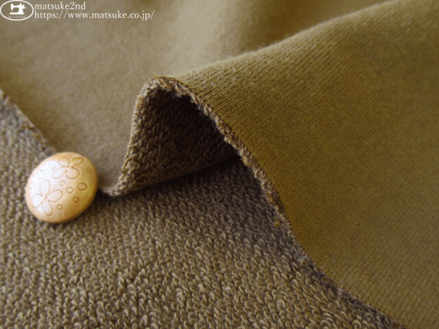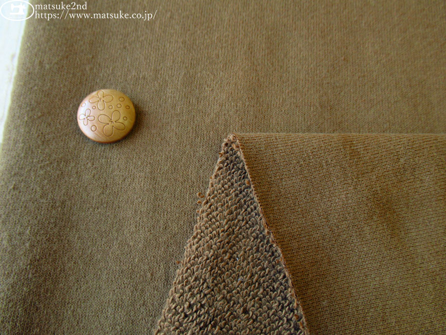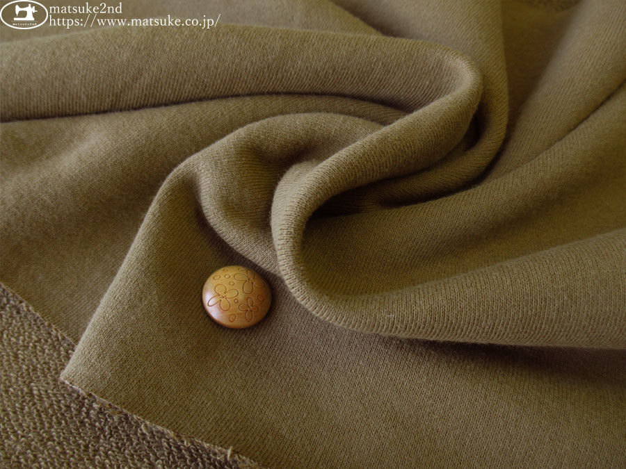 TOP 秋冬物生地ニット地 アウトレット生地ニット地 デッドストック反ニット地 ニット生地種類でさがす裏毛/ミニ裏毛 ニット生地柄でさがす無地ブラウン/ベージュ系 ニット生地素材でさがすコットン 新着商品[2025年]新着商品[2025年11月]新着商品[2025/11/4] 【デッドストック反】 ややしっかりとした裏毛ニット カーキブラウン 168cm幅 コットン(混紡率不明) テンション中 一般的な30/10裏毛程度の厚みで、ややしっかりとした裏毛です。 一度洗いしたようなナチュラルな表情が魅力です。 少しハリ感のある表面感でさらっとた肌触りですが、ループはやや硬めです。 横方向に伸縮性があります。 アウター、セットアップなどのお洋服にいかがでしょうか。 ボタンの大きさは2cm 【デッドストック反】 ややしっかりとした裏毛ニット カーキブラウン 価格: ¥440 (税込 ¥484) [ポイントアップ中 9ポイント~] 販売期間: 数量: ×50cm 品番/カラー在庫購入np-9302 カーキブラウン× 品番/カラー在庫購入np-9302 カーキブラウン× 返品についての詳細はこちら