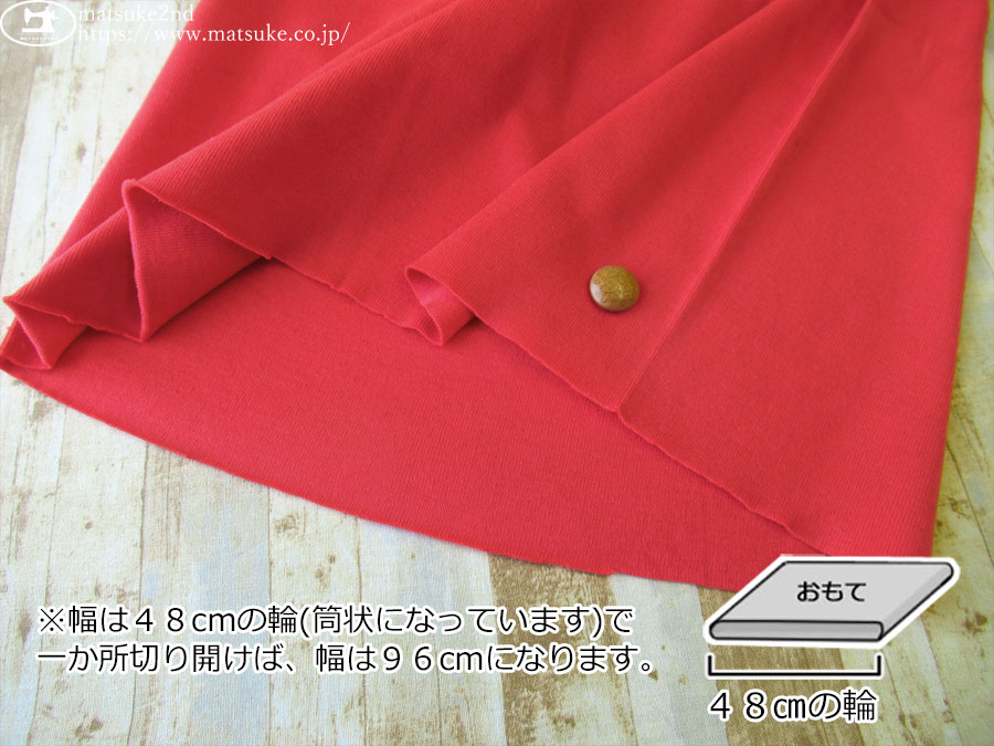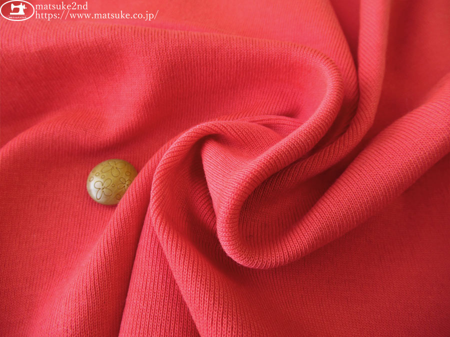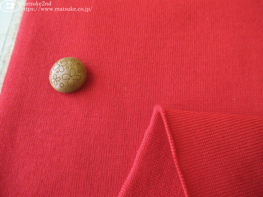ポリウレタンを含んだようなキックバック性はなく、普通のニット地のような伸び方になります。