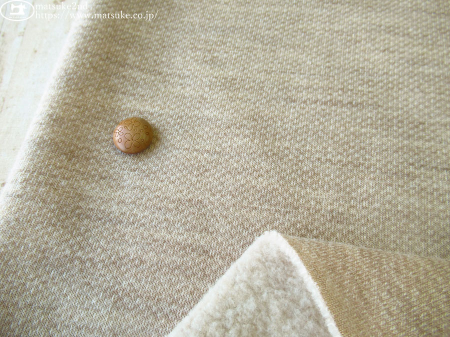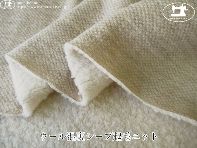 TOP 秋冬物生地ニット地 あったか!起毛生地ニット生地 アウトレット生地ニット地 デッドストック反ニット地 ニット生地種類でさがす起毛ニット裏起毛ニット ニット生地柄でさがす無地その他 ニット生地素材でさがすウールその他 新着商品[2025年]新着商品[2025年12月]新着商品[2025/12/23] 【デッドストック反】 ウール混裏シープ起毛ニット オートミールベージュ 115cm幅 ウール、その他(混紡率不明) テンション中 約7mm程度の厚みで、一般的な裏起毛ニットほどのしっかりと肉感がある素材です。 ボリューム感がありながらも軽く、生地自体はやわらかい風合いです。 裏面はもこもことしたシープ起毛で、ふんわり暖かくやさしい肌触りが魅力です。 表面にはウールを混紡しており、ドライな風合とウール特有のチクチク感があります。 横方向に伸縮性があります。 セットアップやアウターなどにいかがでしょうか。 ボタンの大きさは2cm 【デッドストック反】 ウール混裏シープ起毛ニット オートミールベージュ 価格: ¥440 (税込 ¥484) [ポイント還元 4ポイント~] 販売期間: 数量: ×50cm 品番/カラー在庫購入np-9346 オートミールベージュ× 品番/カラー在庫購入np-9346 オートミールベージュ× 返品についての詳細はこちら